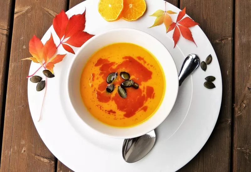 Nezapomínejme ani na potraviny, které nás zahřejí, jako jsou kořenová zelenina (mrkev, celer, petržel), batáty a dýně, nebo některé koření (skořice). Vhod vám přijde například dýňová polévka s restovanými houbami a tymiánovým jogurtem.