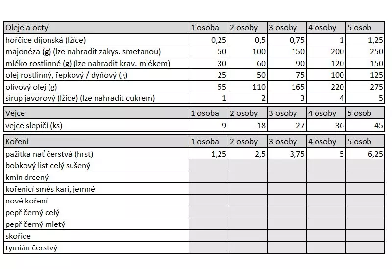 Nákupní seznam jsme vám přepočítali do jednotlivých skupin a na přesné množství podle počtu osob. Kromě surovin obsažených v nákupním seznamu, počítá recept Těstoviny s bylinkovým pestem také s divokými bylinkami. Můžete se vydat do přírody a nasbírat si to, co zrovna roste - kopřivy, bršlici, popenec, medvědí česnek... Divoké bylinky ale nemusí být pro každého dostupné - je možné je nahradit libovolnými kupovanými. Např. bazalkou. Nezapomeňte je ale přidat do nákupu - na seznamu nejsou:)